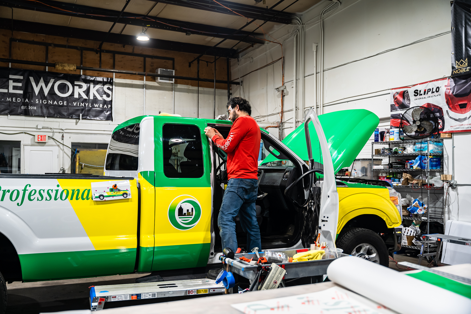 Noble Works located in the heart of Salem is an automotive shop specializing in vinyl wrap installation. With an in-house printer for custom prints, a large variety of vinyl colors to choose from & a crew filled with experienced professionals, Noble Works handles anything & everything from supercars to commercial vehicles.